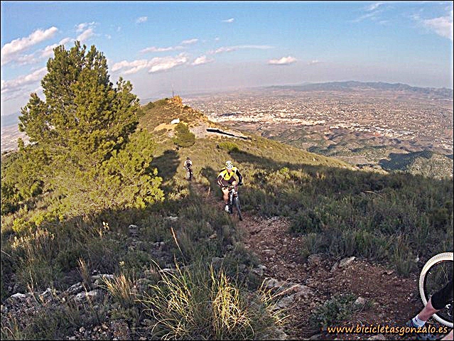 Pasamos las primeras antenas y vamos por la senda a los ultimos repetidores. Trialera guapa y altura que da vértigo cuando