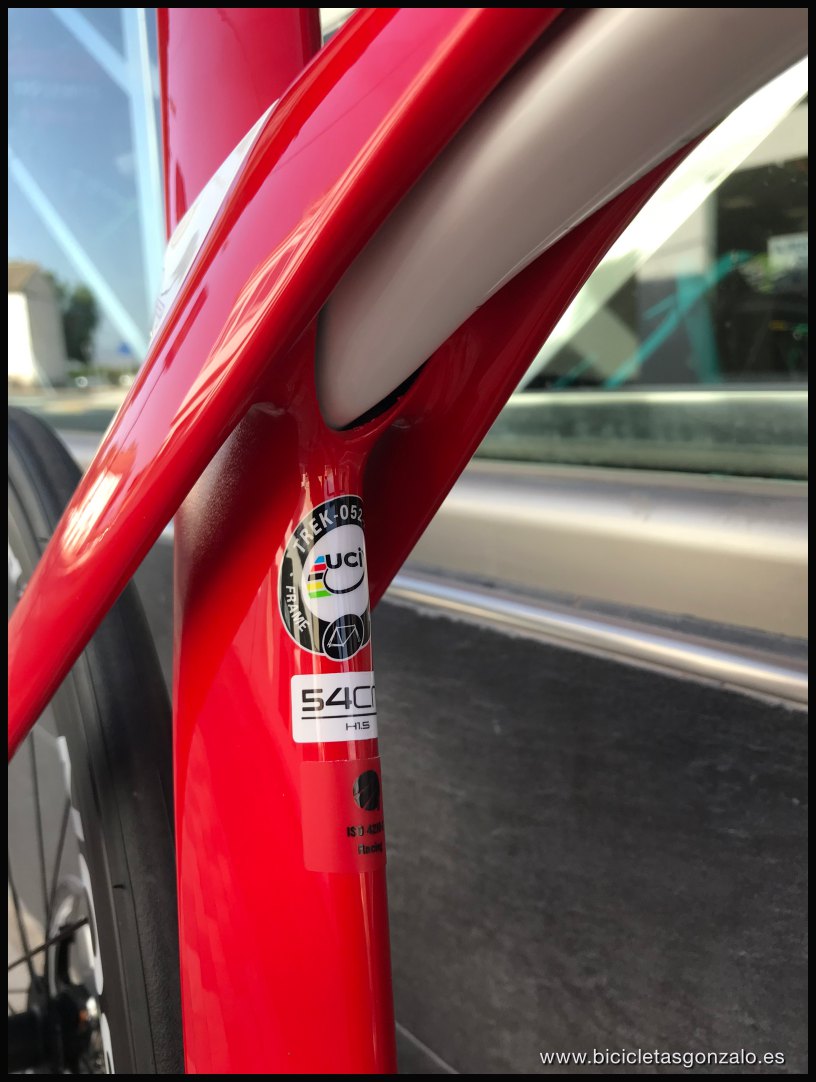 Brutal actualización de la bici más tecnológica de Trek. Nuevo sistema de absorción Isospeed integrado bajo el tubo horizontal y regulable n efecto de una forma muy sencilla. Nueva geometría 1.5, más efectiva aún y nuevo diseño más aero y espectacular. Esta es la carta de presentación de esta belleza. Esta es su versión básica con un PVP de 6499€