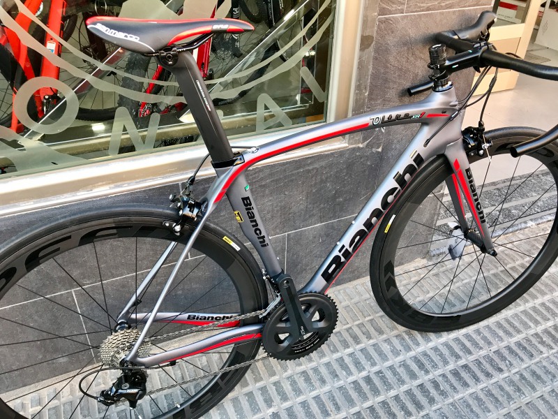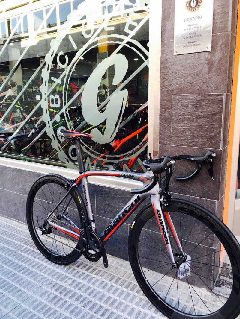Os presentamos la nueva incorporación en nuestra cartera de marcas. La legendaria marca Bianchi. Fabricante líder Italiano con obras de arte en su catálogo. En este caso os mostramos una bici de carretera con diseño "aero" muy guapa. Viene de serie en Shimano 105 o Ultegra. La versión en 105 está en oferta en 1900 €. Solo disponemos de unidades limitadas de algunas tallas. Unas fotos de esta belleza: