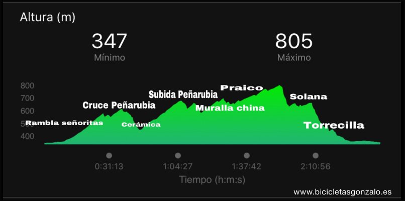 Perfil del domingo, acumulamos 1100 metros positivos en poca kilometrada. Rompepiernas total desde el km 2.